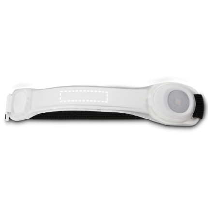 Silicone band with 2 LEDs and elastic velcro strap. Cell batteries (2x) are included. silicone band 185 x 13 x 37 mm, elastic strap 220 x 20 mm