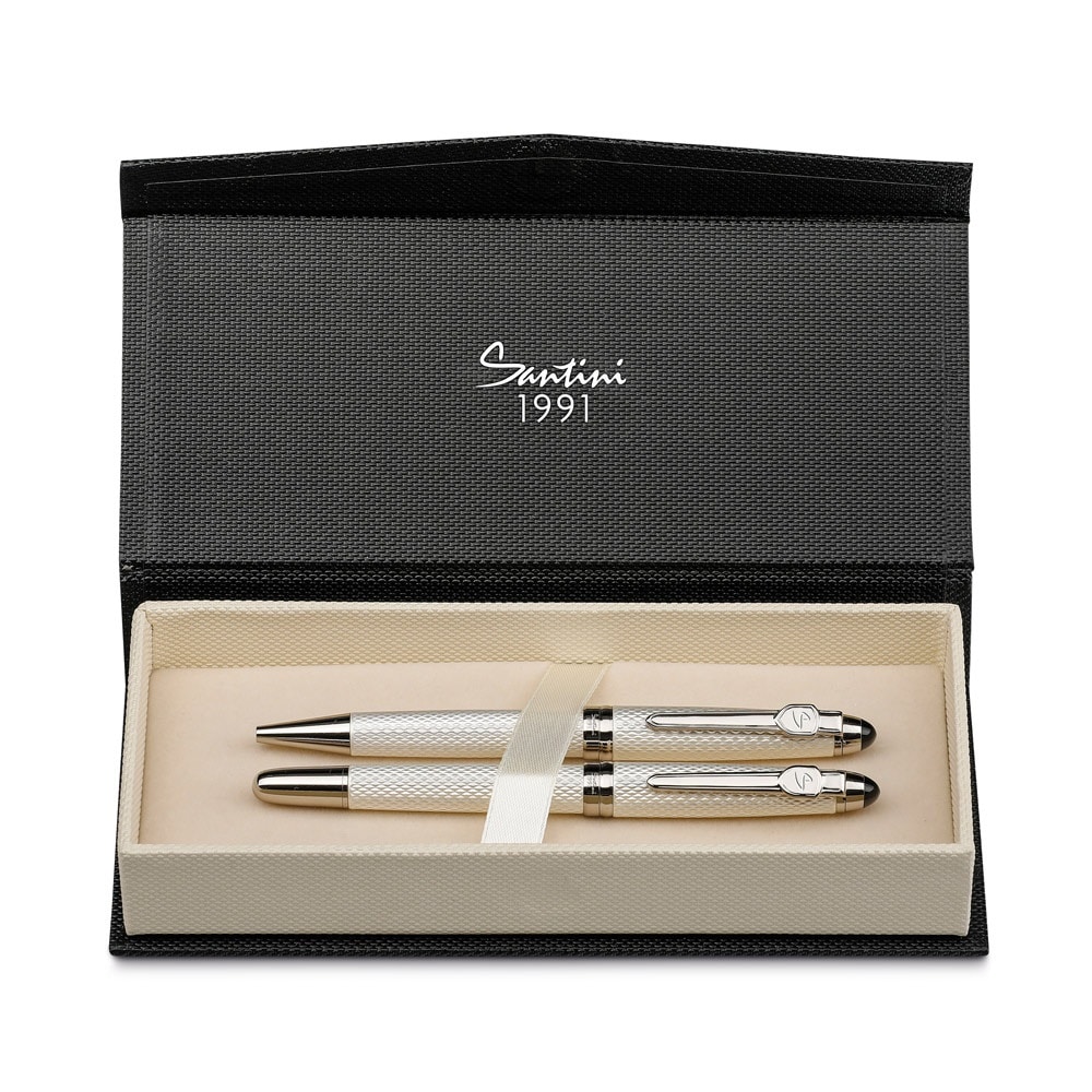 Set of metal ballpoint pens and roller. Supplied gift box. Box: 170 x 125 x 85 mm