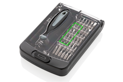 38 pcs tool set with PP bits holder. Bits made from carbon steel. ABS case with transparent top.