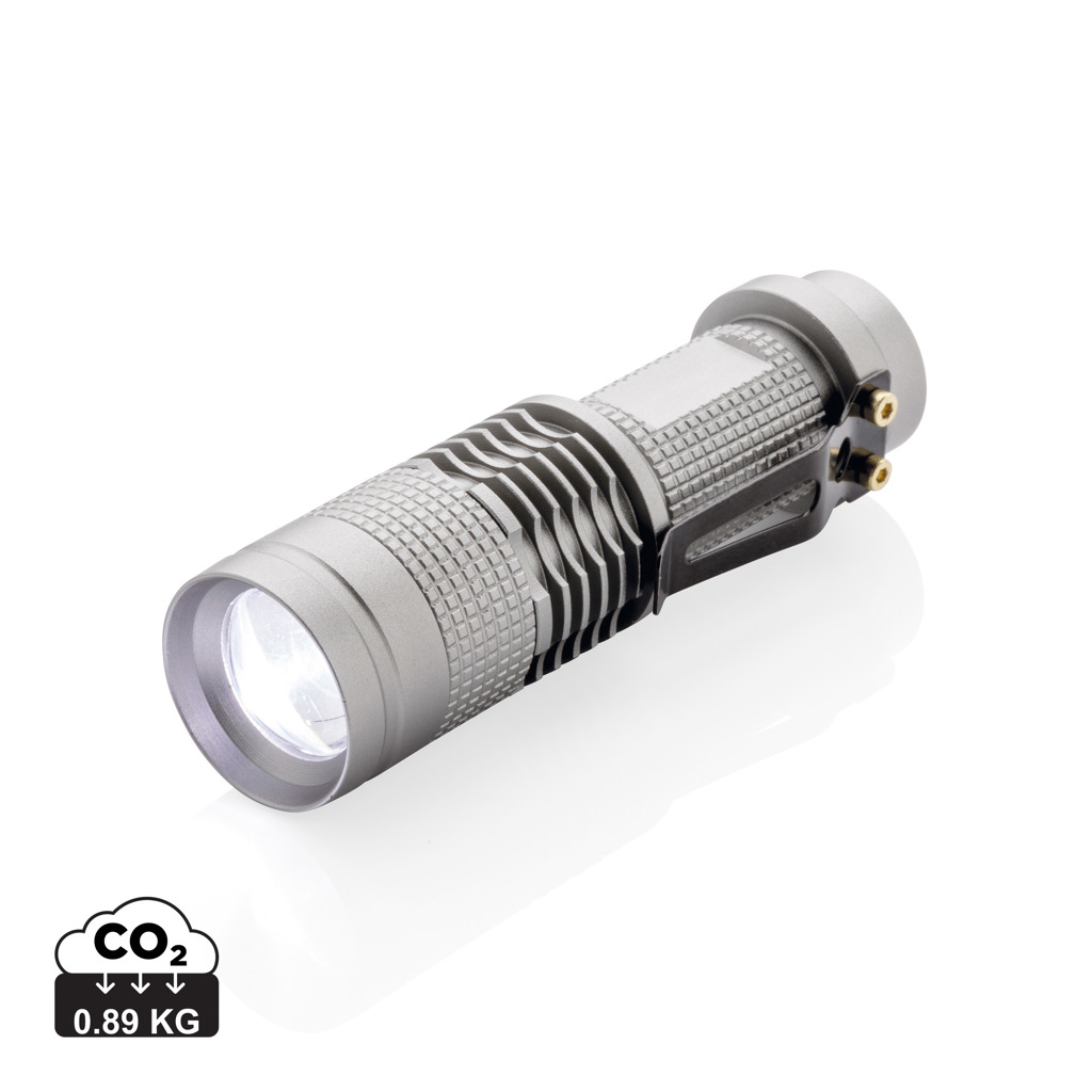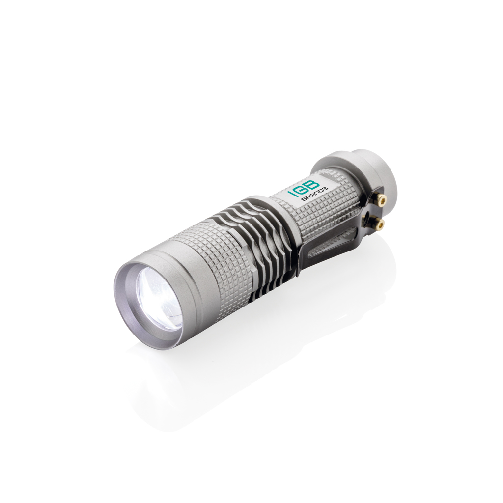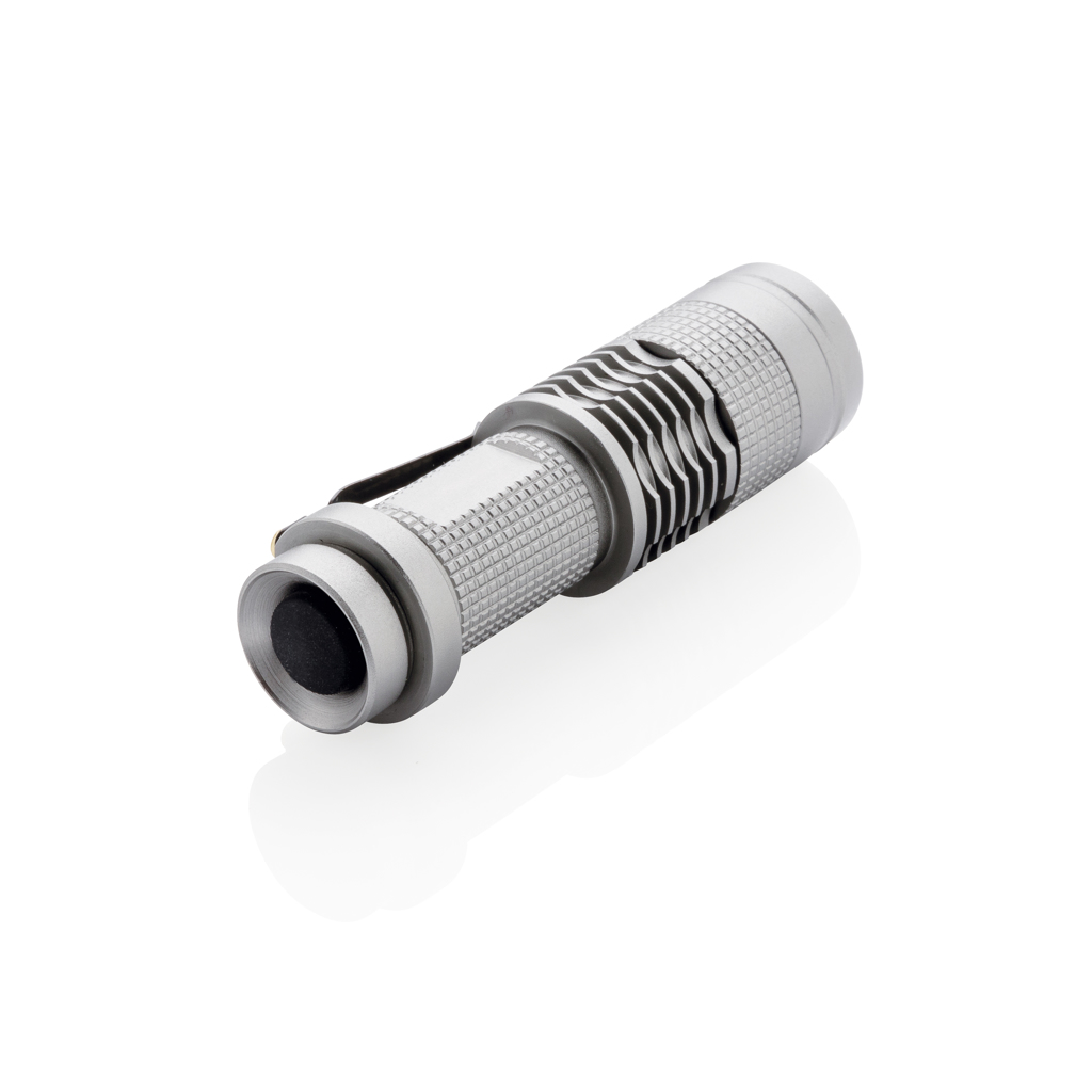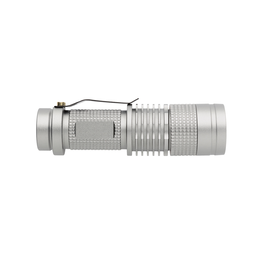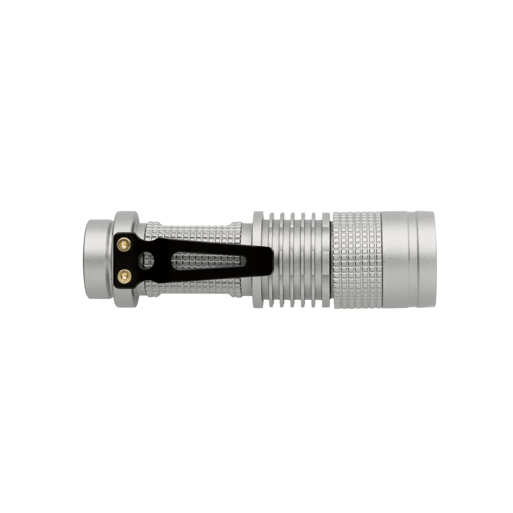 Compact but super bright 3W CREE torch that can easily be taken wherever you go because of its compact size. Includes batteries for direct use. 85 lumen and working time of about 4 hours. Made out of durable aluminium.