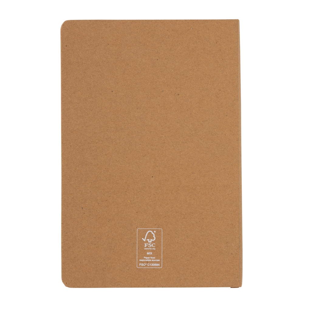 This FSC® hardcover notebook features a FSC-certified paper cover with ribbon page marker. 80 sheets/160 pages of cream, FSC®-certified lined paper.