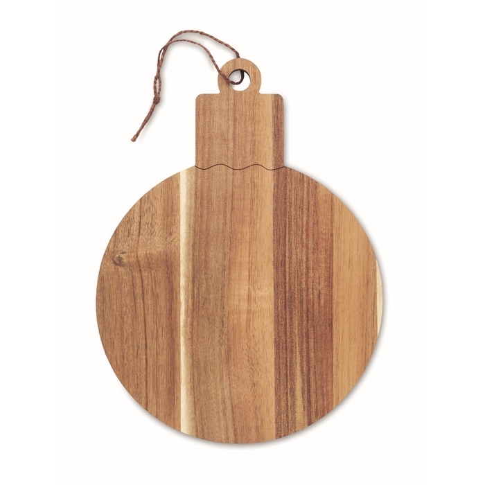 Η σανίδα σερβιρίσματος ACABALL είναι φτιαγμένη από ξύλο ακακίας και έχει το σχήμα ενός χριστουγεννιάτικου στολιδιού. Διαθέτει κορδόνι PU για ευκολία στη χρήση. Το ξύλο είναι φυσικό προϊόν, ενδέχεται να υπάρχουν μικρές διακυμάνσεις στο χρώμα και το μέγεθος ανά προϊόν, το οποίο μπορεί να επηρεάσει το τελικό αποτέλεσμα διακόσμησης.