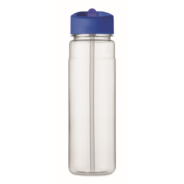 Drinking bottle in RPET and PP flip-top lid with straw. Capacity: 650ml. Not suitable for carbonated drinks.