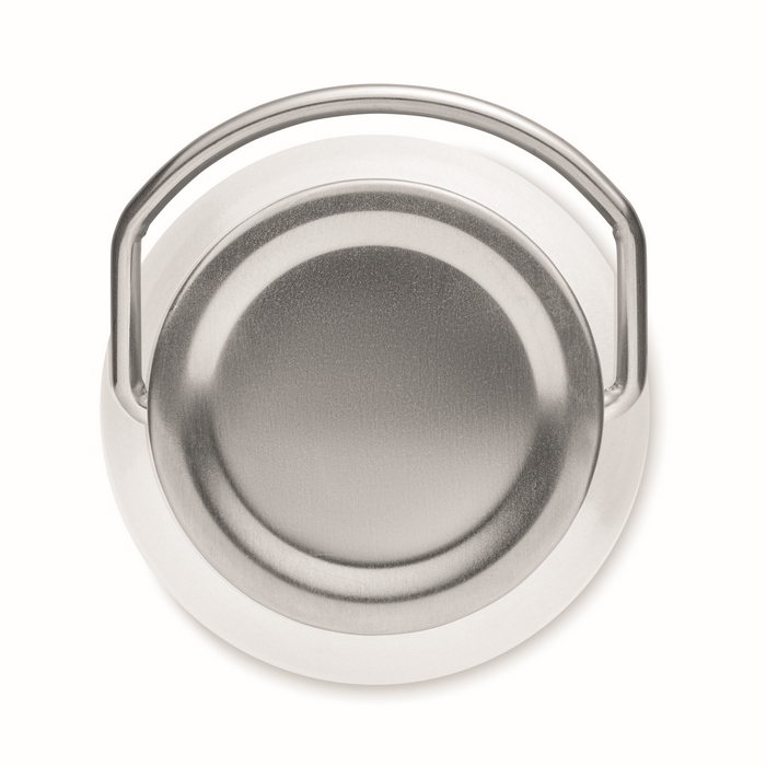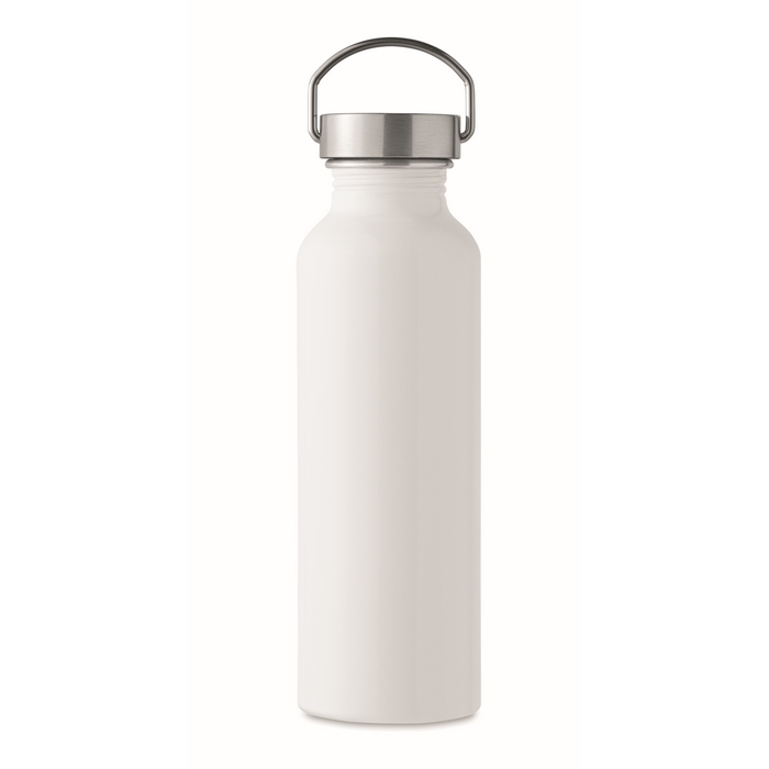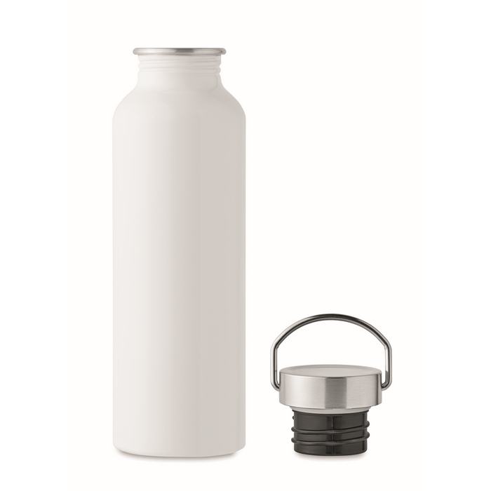 Recycled aluminium bottle with stainless steel handle lid. Leak-free. Capacity: 500 ml.