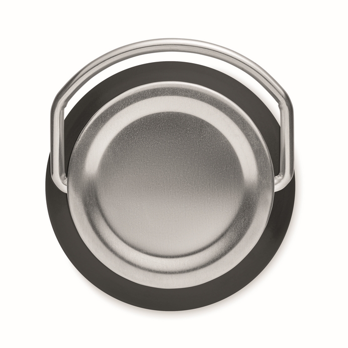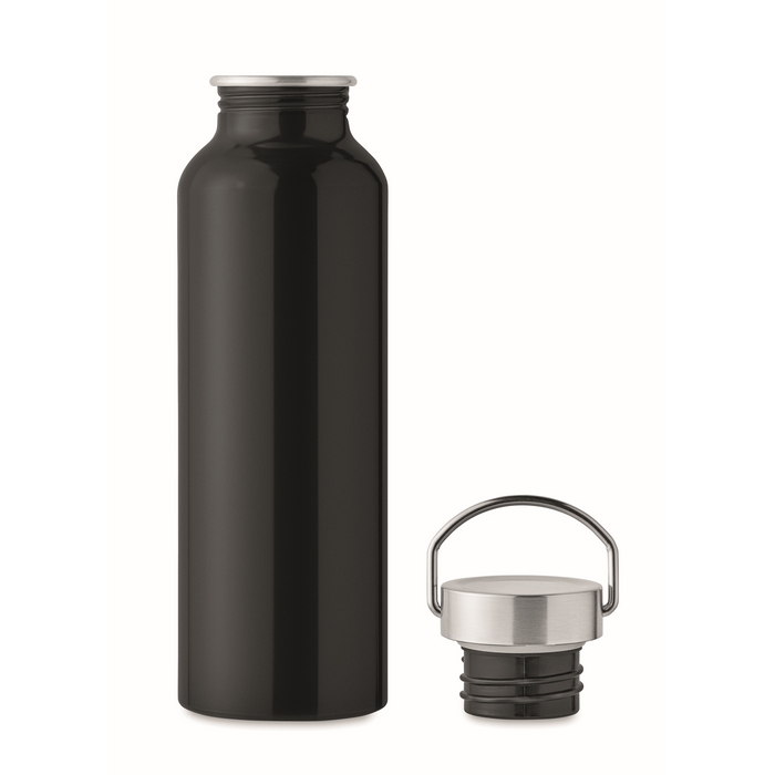 Recycled aluminium bottle with stainless steel handle lid. Leak-free. Capacity: 500 ml.