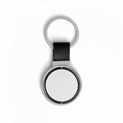 Metal and imitation leather keyring suitable for customisation by doming 39 x 57 x 5 mm