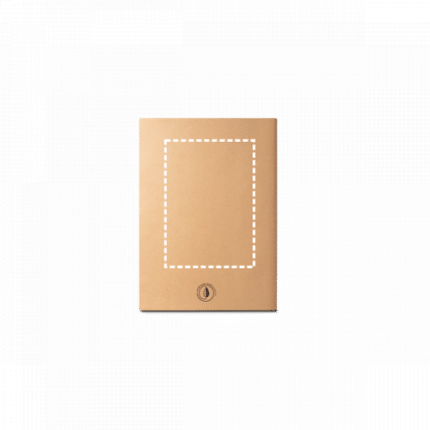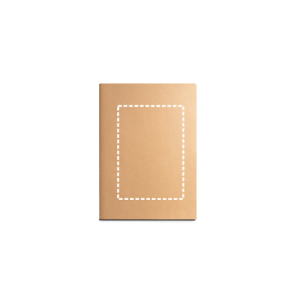 A6 notepad with Kraft paper cover (250 g/m²) and round corners. Contains 80 plain, sewn pages of recycled paper from sustainable forest management. 100 x 145 mm