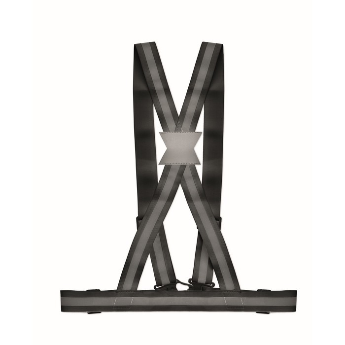 Adjustable 360°reflective body belt with silver stripes. For promotional use only.