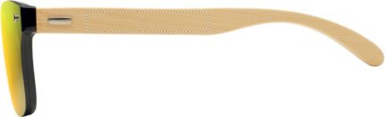 Sunglasses with bamboo arms and all over mirrored lens. UV400 protection. Bamboo is a natural product, there may be slight variations in colour and size per item, which can affect the final decoration outcome.