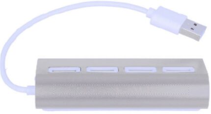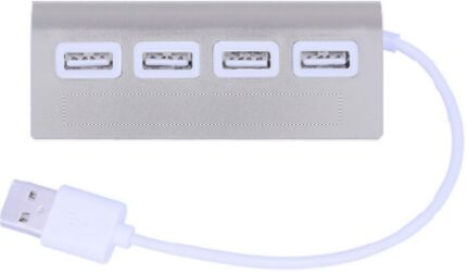 4 port 2.0 USB in aluminum. Cable length 14.5 cm.