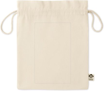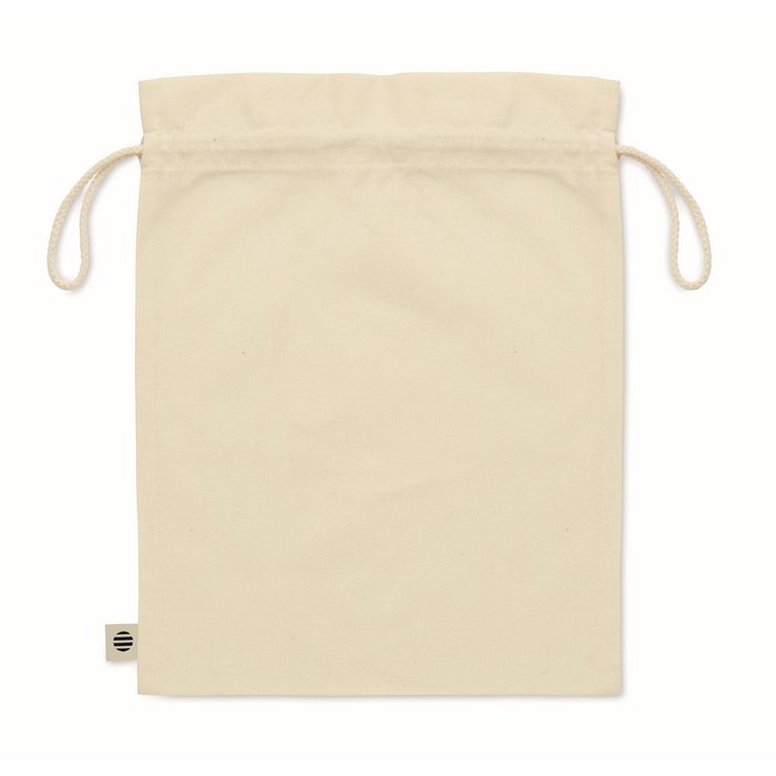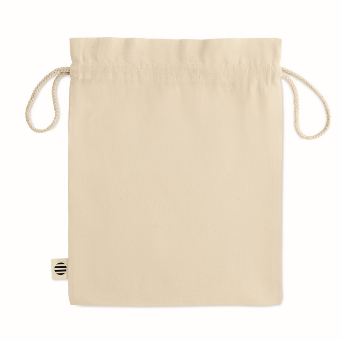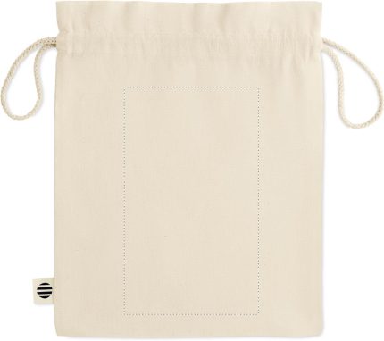 Medium gift draw cord bag in organic cotton. Size approx. 25 x 32 cm. 105 gr/m².