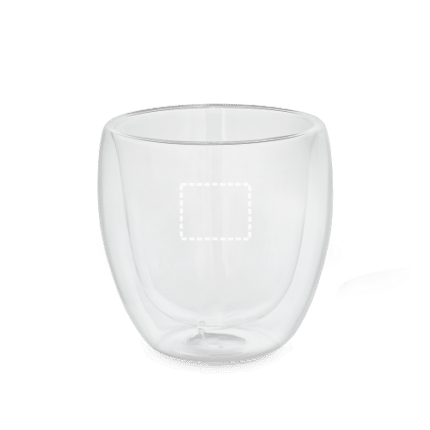 Isothermal glass cup with air-insulated double wall and capacity up to 220 mL. Supplied in a customisable gift box. ø80 x 86 mm