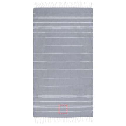 The Anna 150 g/m² cotton hammam towel is made of 100% cotton, is soft and absorbent and have multiple uses. The towel dries quickly and is lightweight, making it easy to carry with you. Certified STANDARD 100 by OEKO-TEX®.