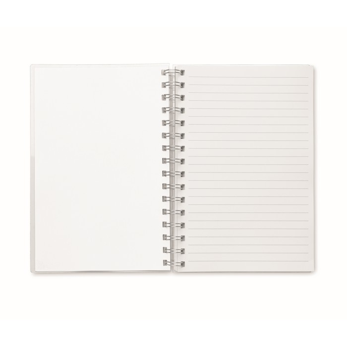 A5 notebook with RPET cover. Twin-wire. 160 recycled white lined pages (80 sheets).