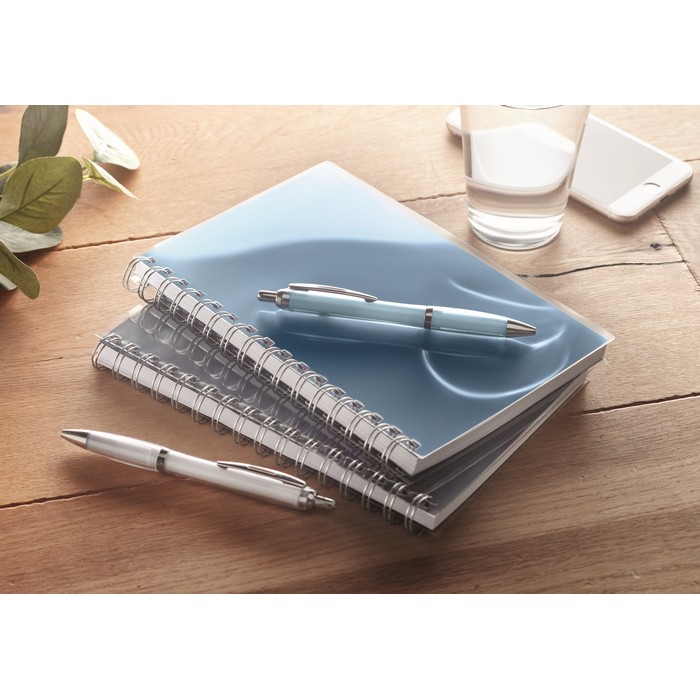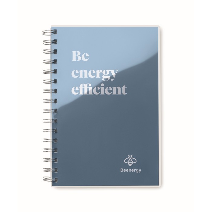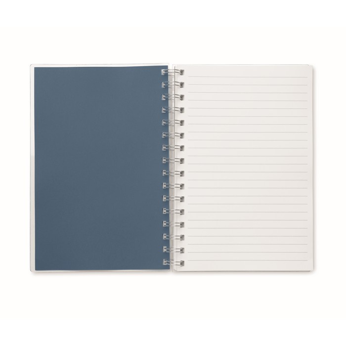 A5 notebook with RPET cover. Twin-wire. 160 recycled white lined pages (80 sheets).