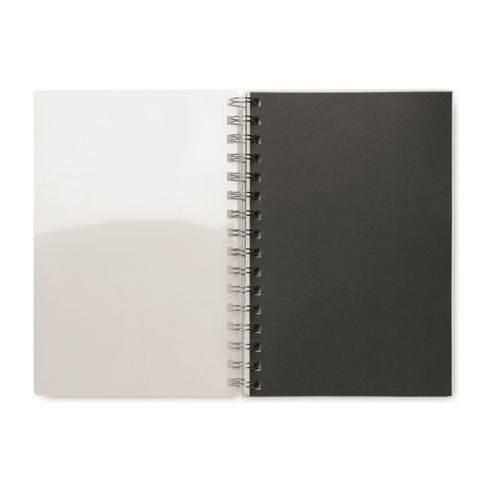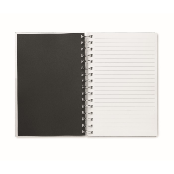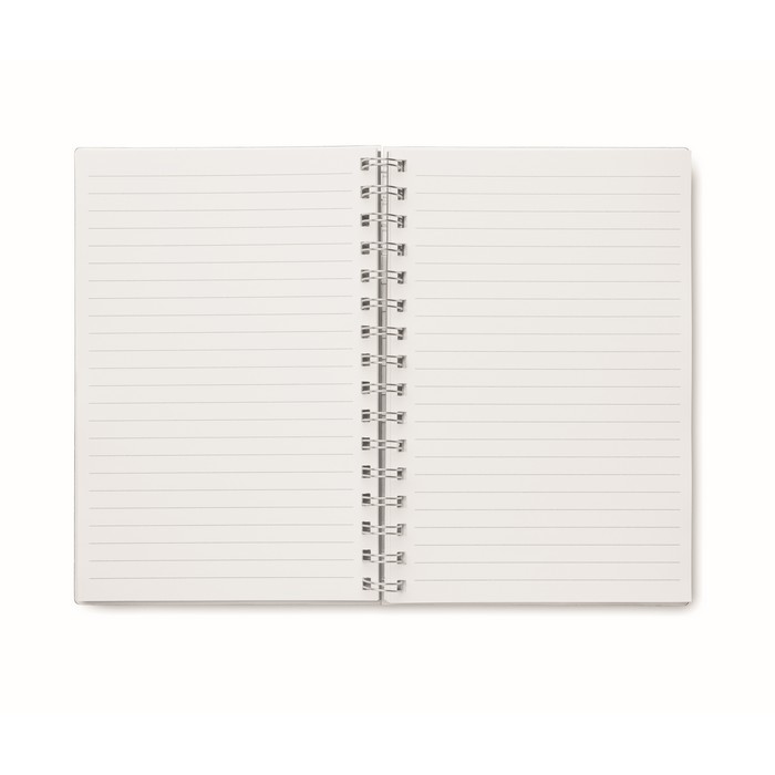 A5 notebook with RPET cover. Twin-wire. 160 recycled white lined pages (80 sheets).