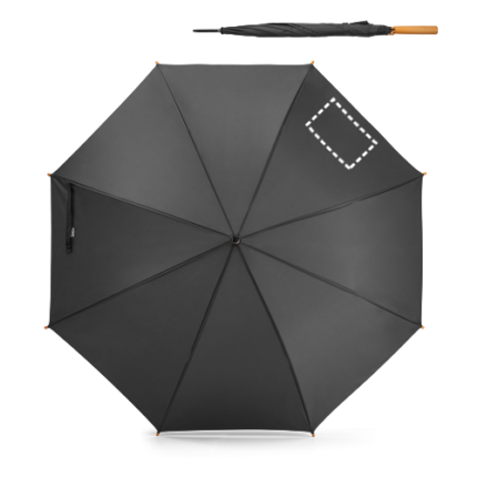 PET (100% rPET) pongee umbrella with automatic opening, metal frame and shaft and wooden handle. ø1050 x 850 mm
