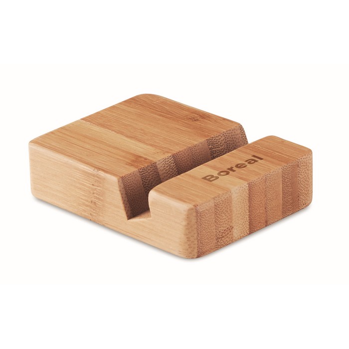 Smartphone stand in bamboo. Bamboo is a natural product, there may be slight variations in colour and size per item, which can affect the final decoration outcome.