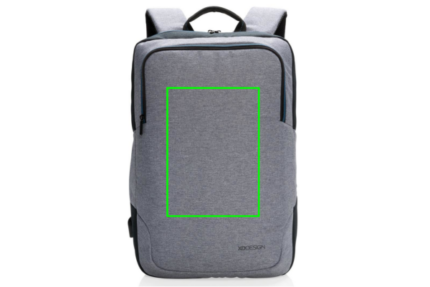 Unique designed 15” laptop backpack with one large main compartment for your laptop and one front compartment. Innovative handsfree suction system on the straps will hold your phone while commuting. Connect your powerbank easily to the integrated USB charging port and charge your phone or tablet on the go. Registered design®
