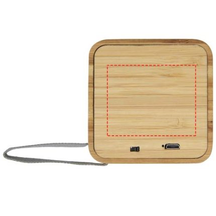Bamboo Bluetooth® speaker with a 3W output and crystal clear sound. A compact speaker with a built-in 500 mAh battery that allows for up to 3 hours of usage at maximum volume. Bluetooth® 5.0 working range is up to 10 meters. Packaged in a gift box and delivered with an instruction manual (both made of sustainable material). Micro-USB charging cable is included. Since bamboo is a natural product, there may be slight variations in colour and size per item, which may affect the final decoration outcome.