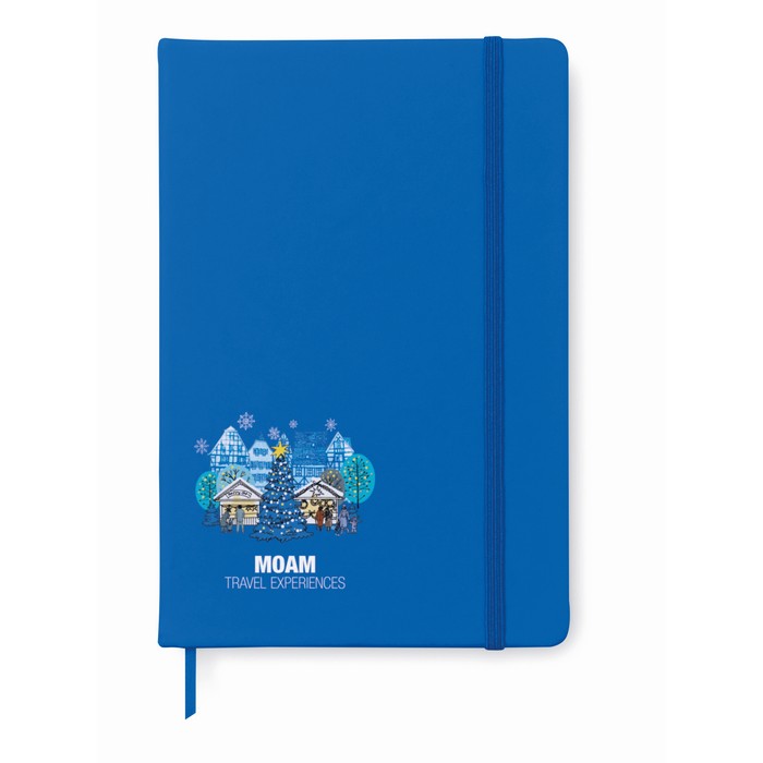 A5 notebook with hard PU cover. Casebound. 192 lined pages (96 sheets). Matching elastic closure strap and ribbon page-marker.