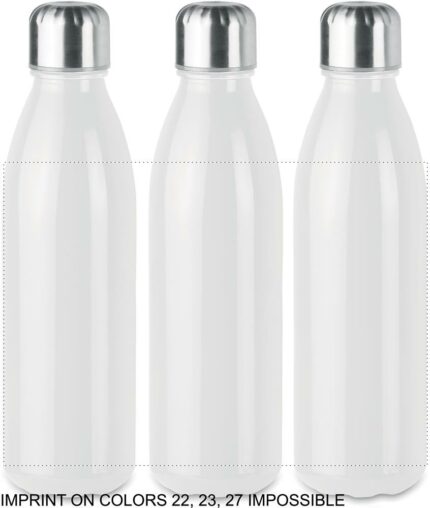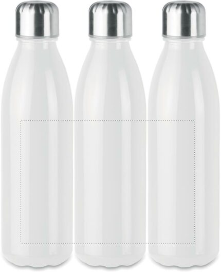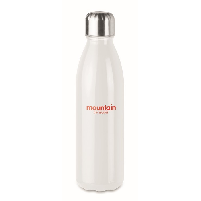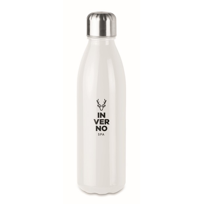 Glass drinking bottle with stainless steel lid. Capacity: 650 ml. Not suitable for carbonated drinks. Leak free.