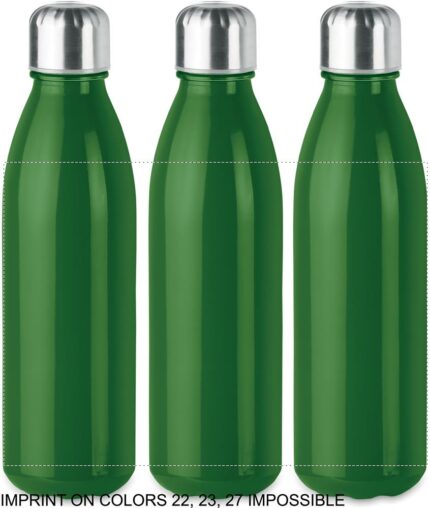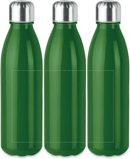 Glass drinking bottle with stainless steel lid. Capacity: 650 ml. Not suitable for carbonated drinks. Leak free.