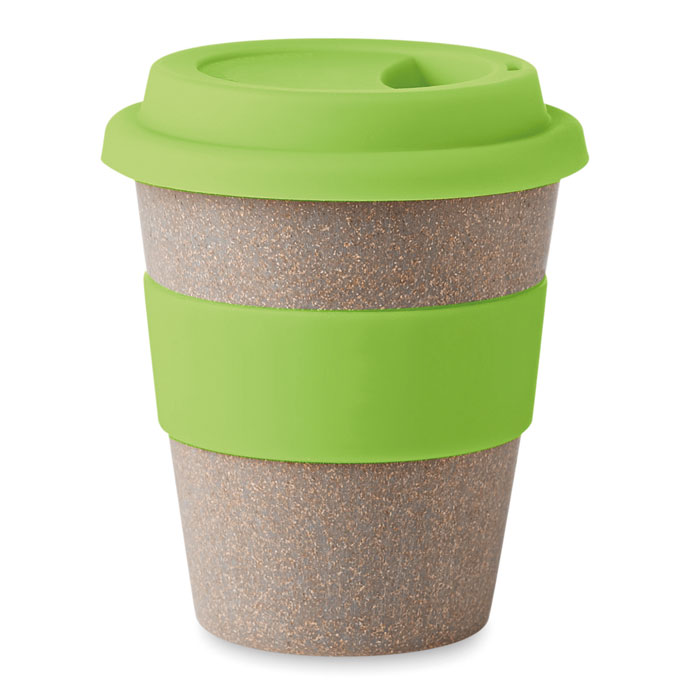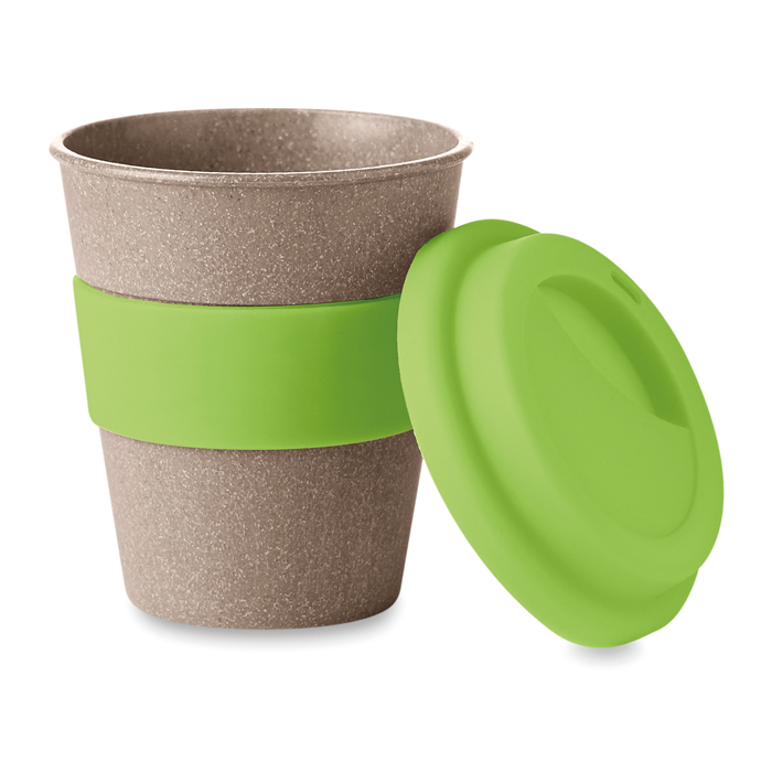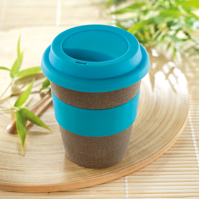 ASTORIA+. Single wall tumbler in 50% bamboo fibre and 50% PP with silicone lid and grip. Capacity 350 ml. As this is a single walled mug heat transfer can still occur. Not suitable for use in microwave oven. ”Not available for sales in the EU”