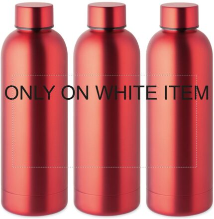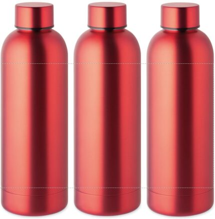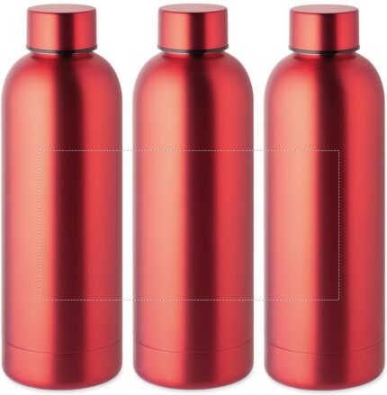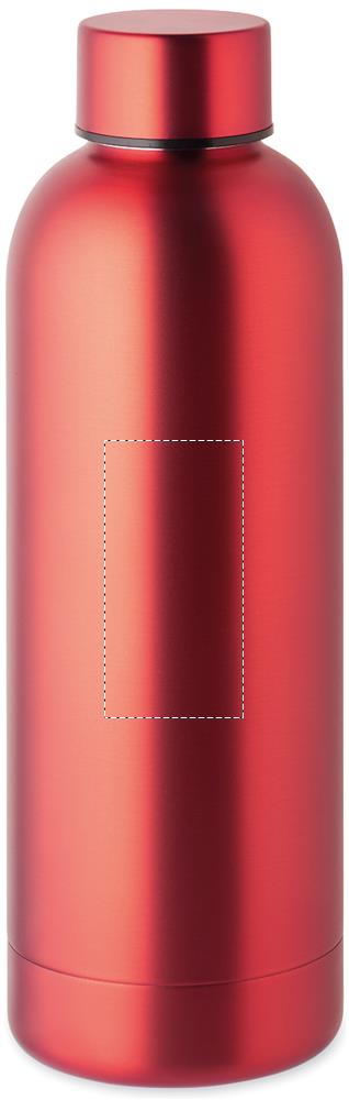 Double wall insulating vacuum bottle in recycled stainless steel (90% recycled stainless steel and 10% stainless steel). Capacity 500 ml. Leak free.