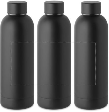Double wall insulating vacuum bottle in recycled stainless steel (90% recycled stainless steel and 10% stainless steel). Capacity 500 ml. Leak free.