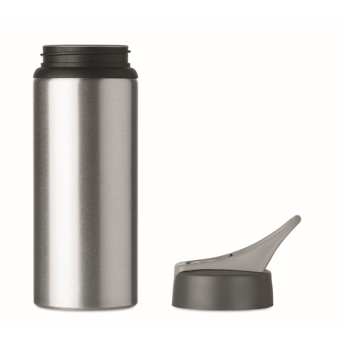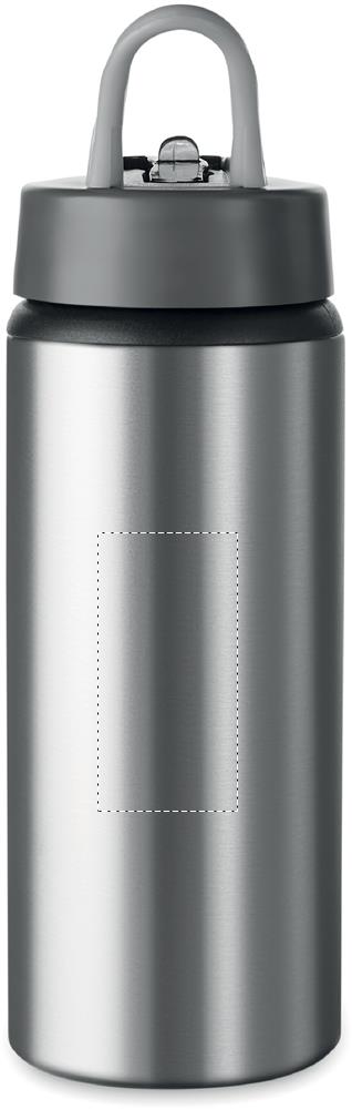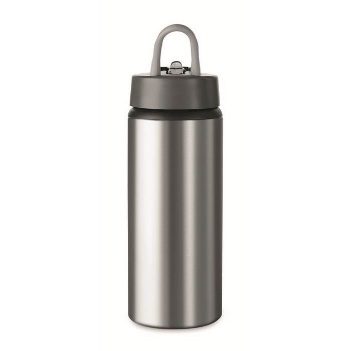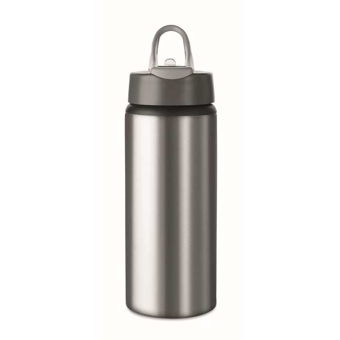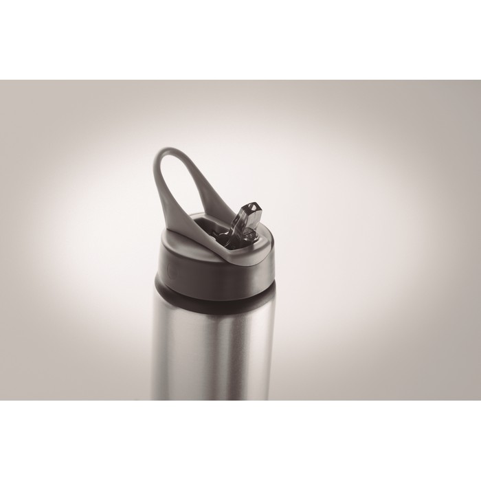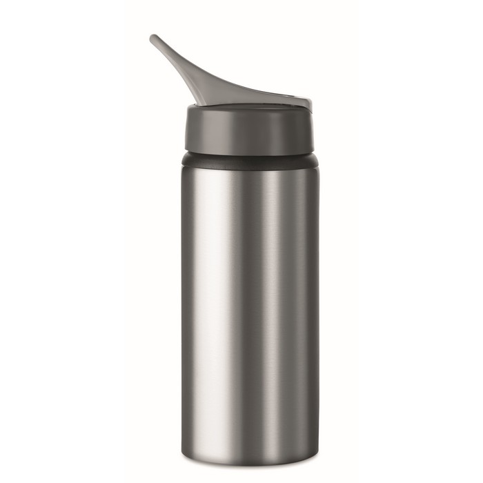 Aluminium single layer drinking bottle with foldable mouth piece and lid with hanger. Capacity 600 ml. Sublimation print available on white item only. Leak free.