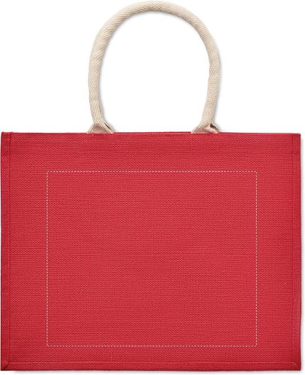 Jute laminated shopping or beach bag with cotton handle. Short handles.