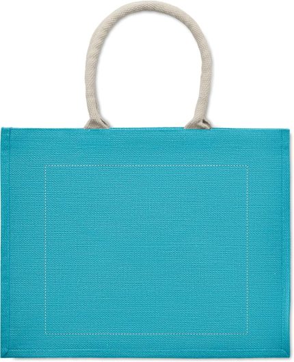 Jute laminated shopping or beach bag with cotton handle. Short handles.
