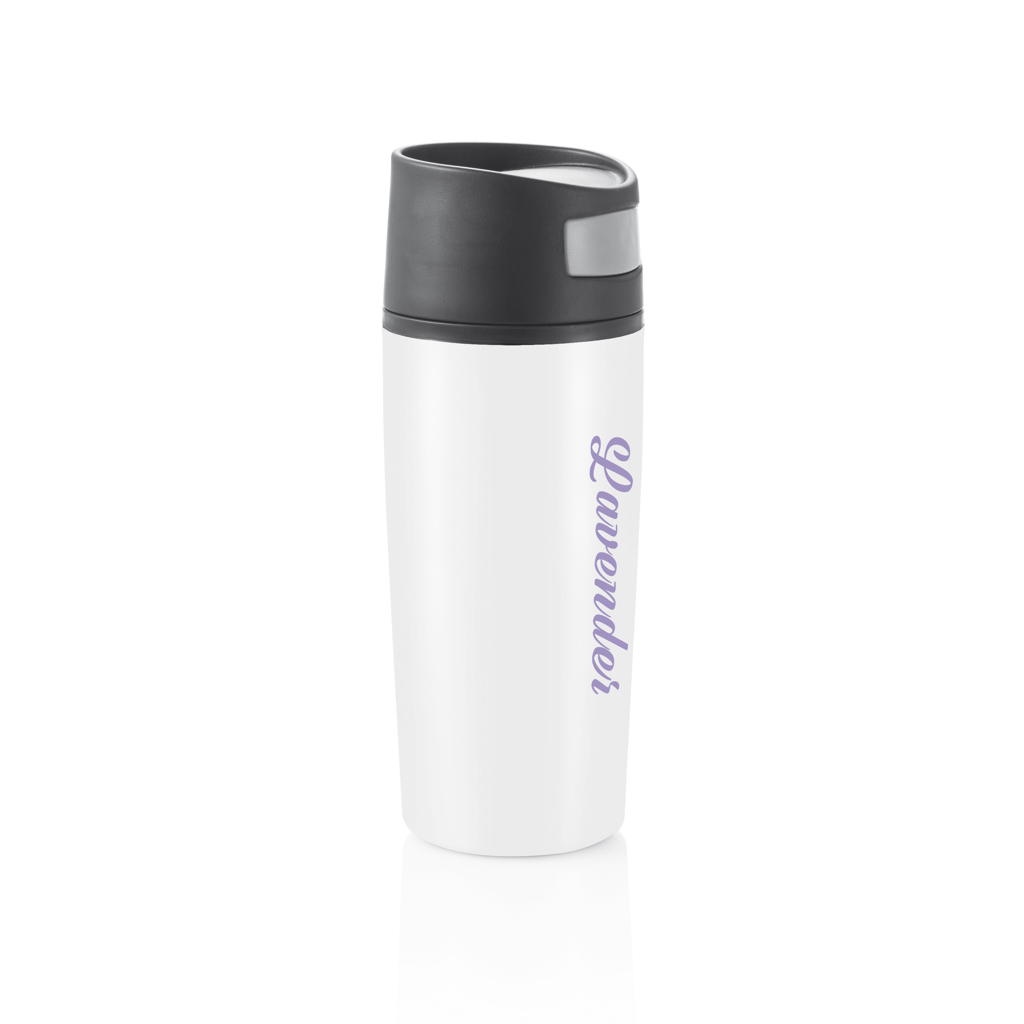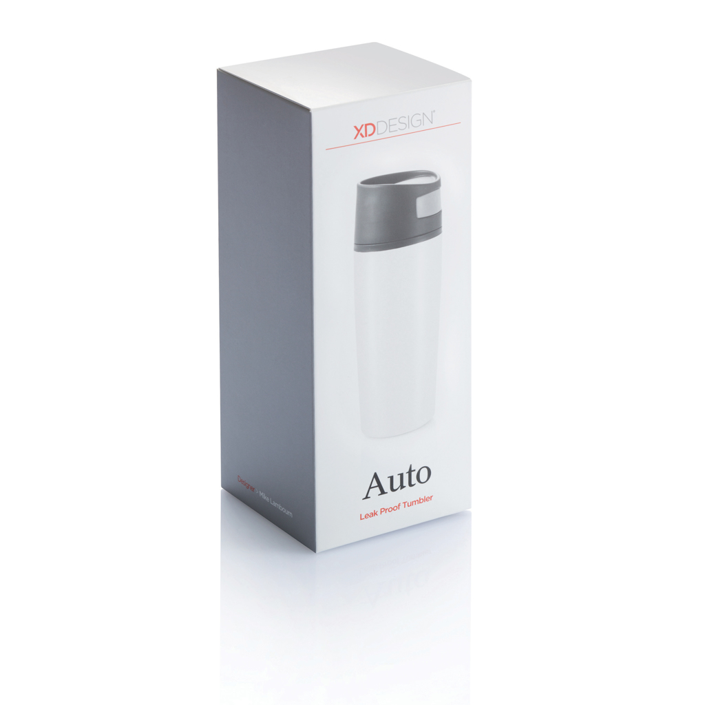 Auto is a 300ml tumbler with black PP coating and an innovative push system which allows you to control it with only one hand. Ideal for in the car. Registered design®