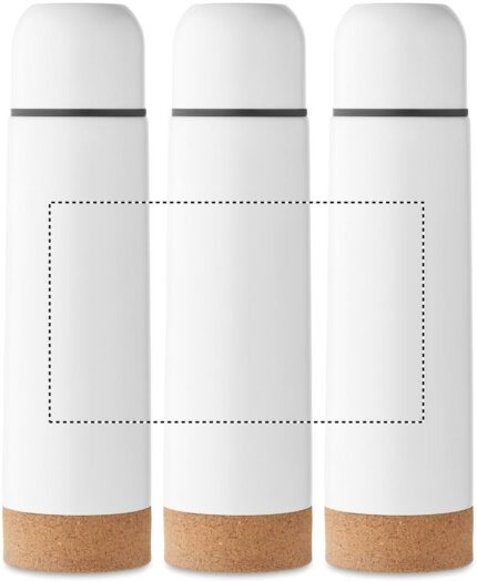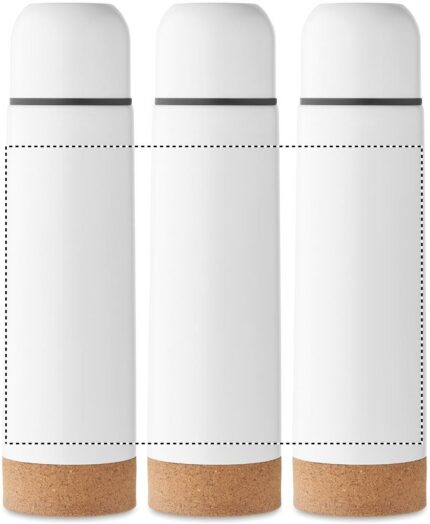 Double wall vacuum insulated flask in recycled stainless steel with cork detail base. Leak-free. Capacity: 500 ml.