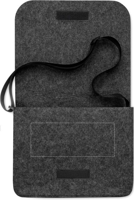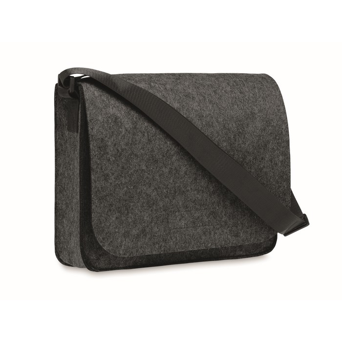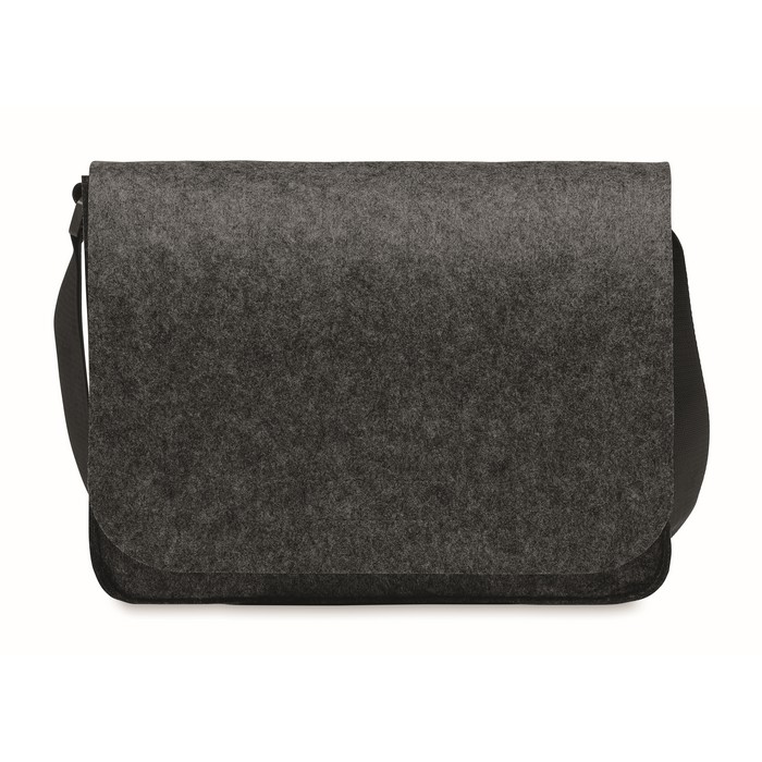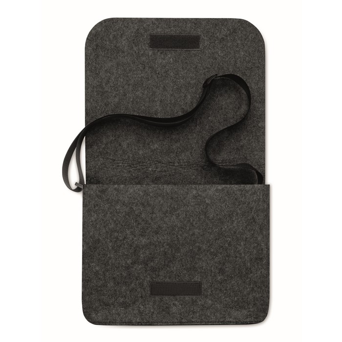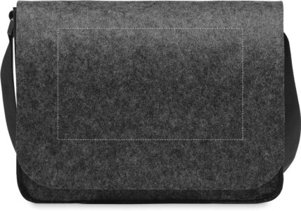 RPET felt messenger or laptop bag with hook and loop closure. Fits a 15 inch laptop.