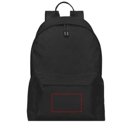 Sustainable GRS certified RPET backpack made with 80% recycled materials. Features a large zippered main compartment with a small zippered pocket inside and a front zippered compartment. Comes with comfortable shoulder straps and a grab handle.