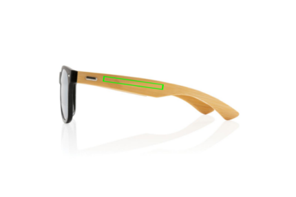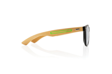 Sunglasses made with RCS certified recycled PC frame and FSC® 100% bamboo temples . Recycled content of frame is 100%. Total recycled content: 41% based on total item weight. RCS certification ensures a completely certified supply chain of the recycled materials. The lenses are smokey acrylic and conform EN ISO 12312-1, UV 400 and CAT 3. Packed in a FSC® kraft packaging.