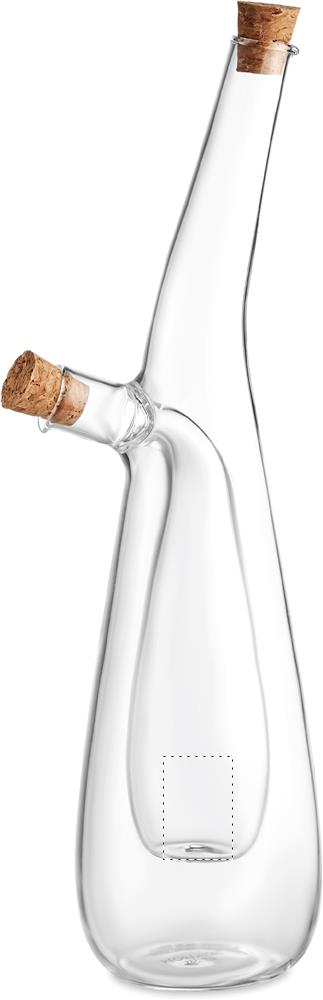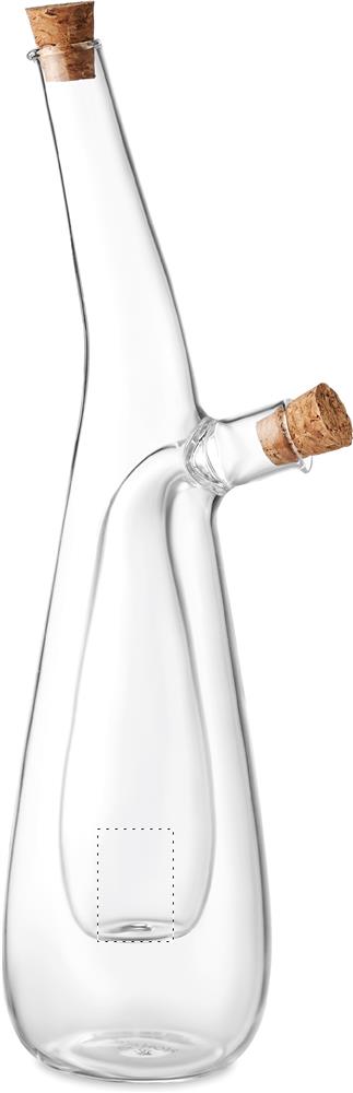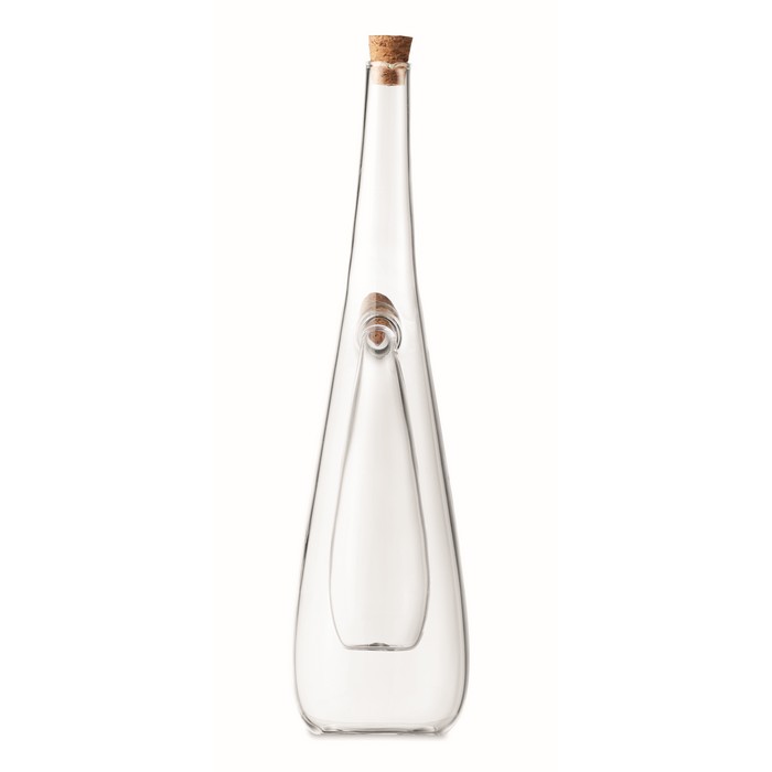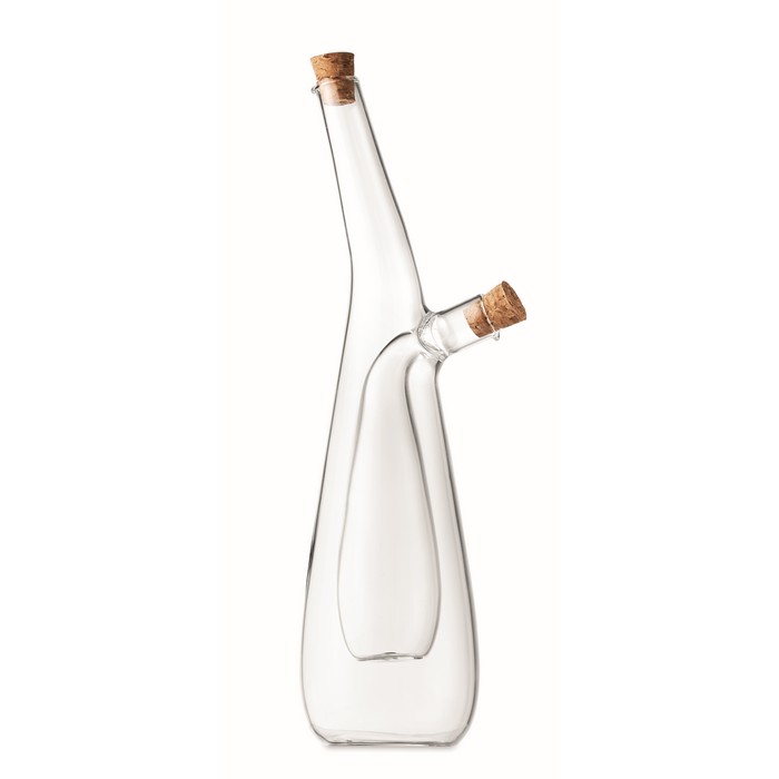Borosilicate glass oil and vinegar bottle with cork stoppers. Capacity outer: 300 ml. Capacity inner: 80 ml.