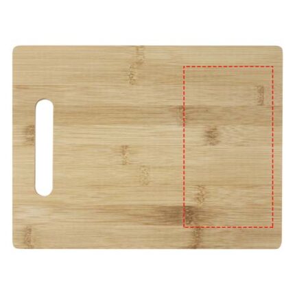 Cutting board made of bamboo that is sourced and produced following sustainable standards. The board can also be used for serving tapas.
