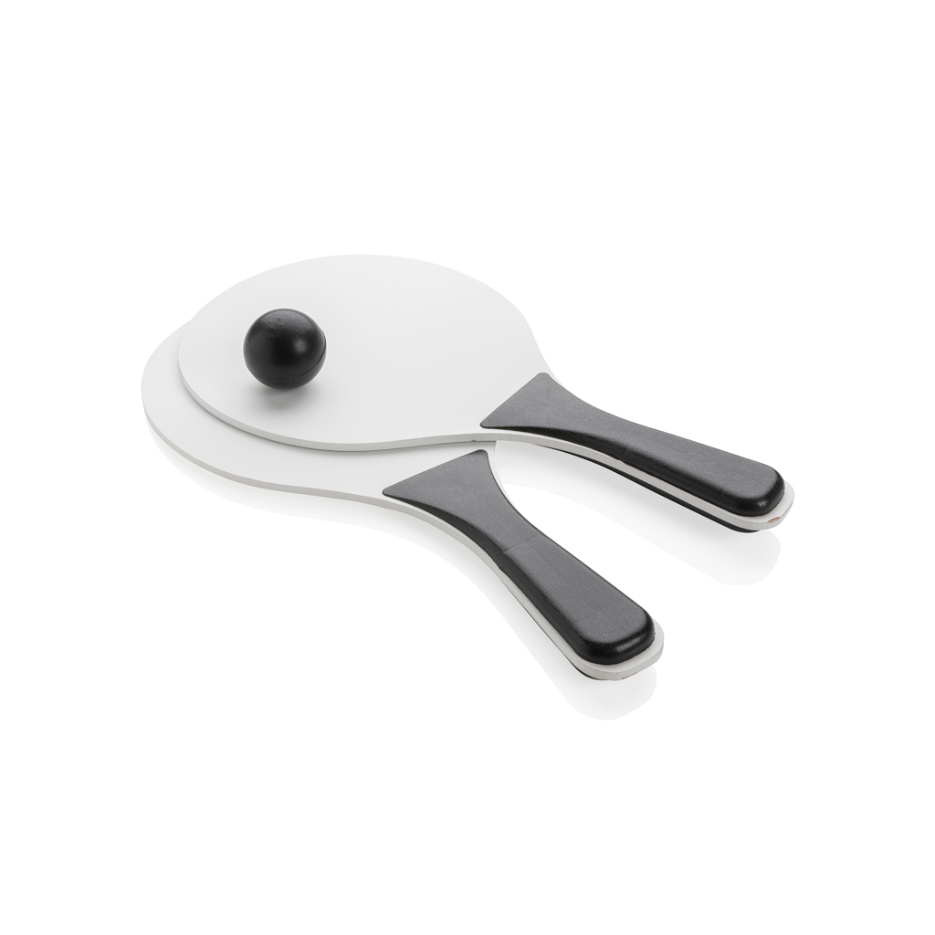 MDF beach ball set with PP handle. Packed in net including 1 ball.