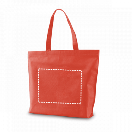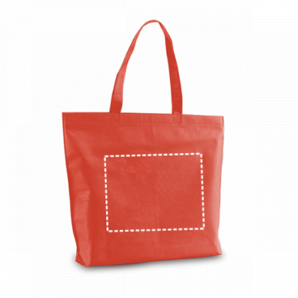 Thermo sealed non-woven bag (80 g/m²) with 55 cm handles. 480 x 380 x 85 mm