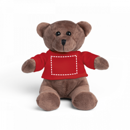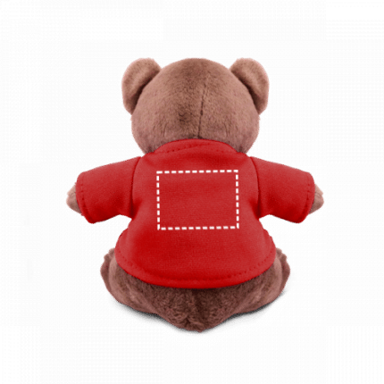 Teddy bear plush toy with t-shirt on. T-shirt available in multiple colors and customisable front and back. Ideal as a gift for the kids. 120 mm