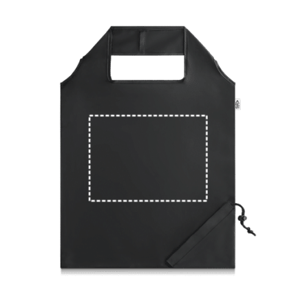 rPET 190T foldable bag. Made from recycled plastic contributing to the reduction of waste in the environment. With 40 cm handles. 370 x 420 mm