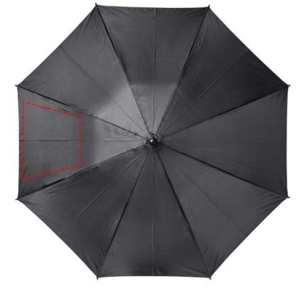 Automatically opening umbrella with a polyester canopy. It has a sturdy metal shaft, a patented high quality full fiberglass frame, offering maximum flexibility in windy conditions. Straight plastic handle, tips and top. Available in a wide variety of contemporary colours and has a large decoration area.