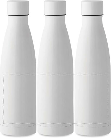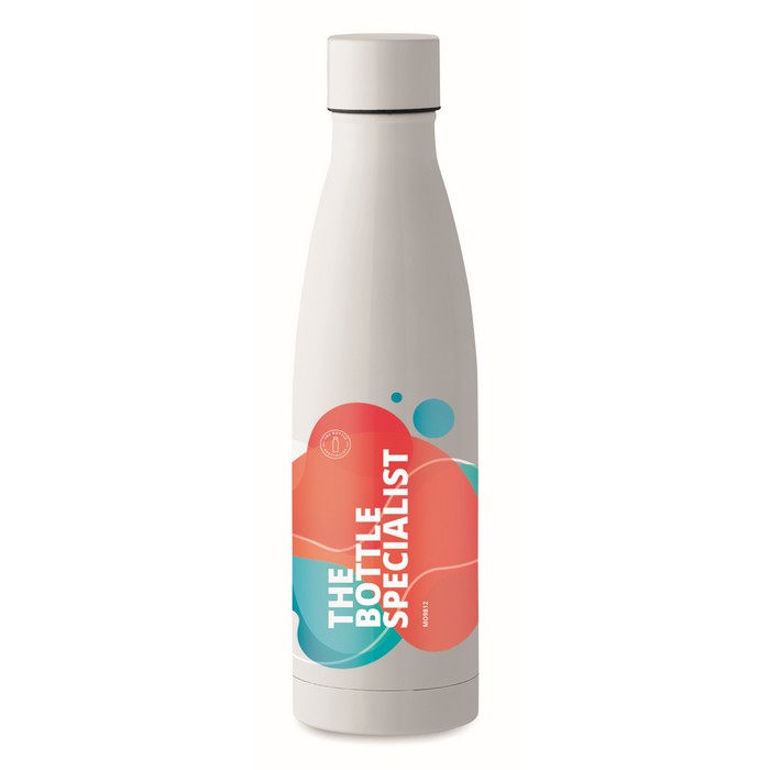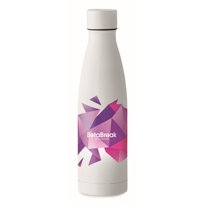 Double wall stainless steel with copper insulating vacuum bottle. Capacity 500 ml. Leak free.