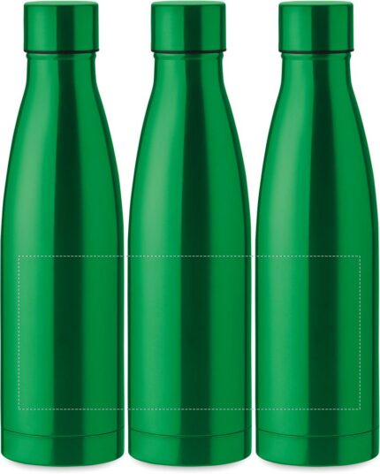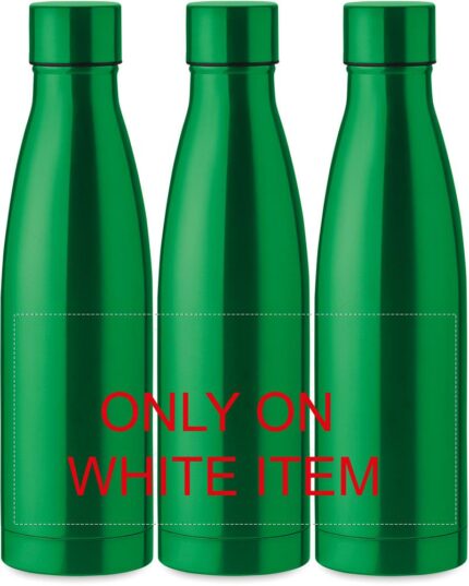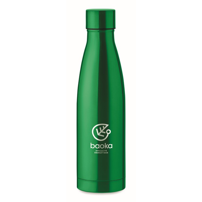 Double wall stainless steel with copper insulating vacuum bottle. Capacity 500 ml. Leak free.