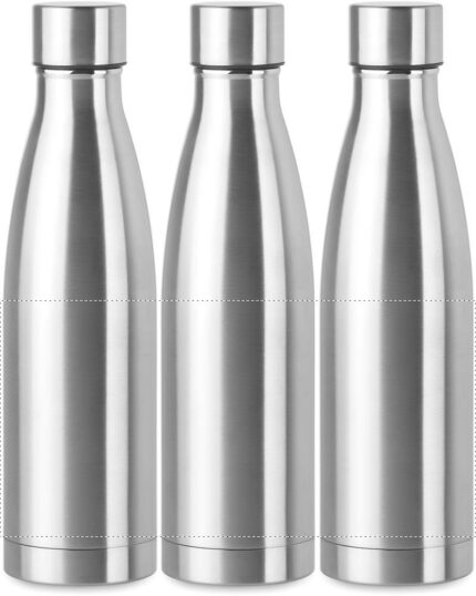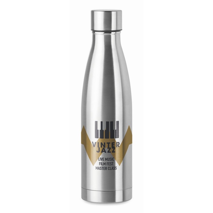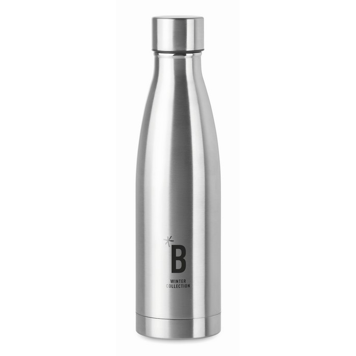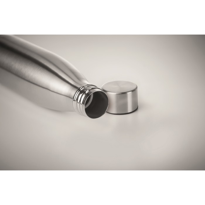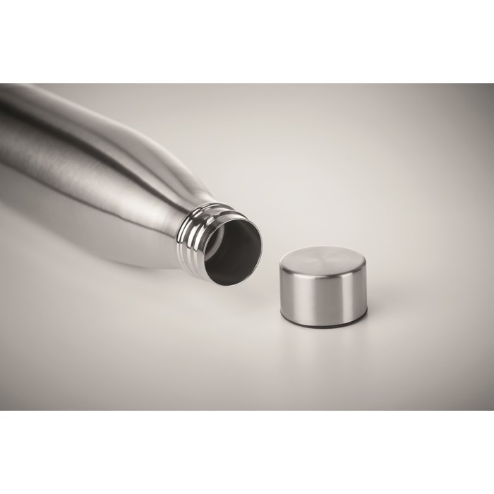 Double wall stainless steel with copper insulating vacuum bottle. Capacity 500 ml. Leak free.