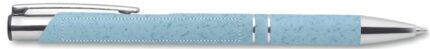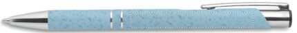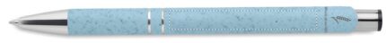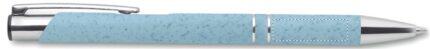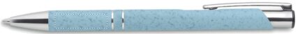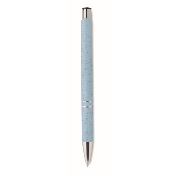 Push button ball pen in 50% wheat straw and 50% ABS material with silver fittings. Blue ink.