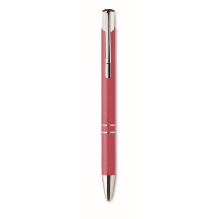 Push button ball pen in 50% wheat straw and 50% ABS material with silver fittings. Blue ink.